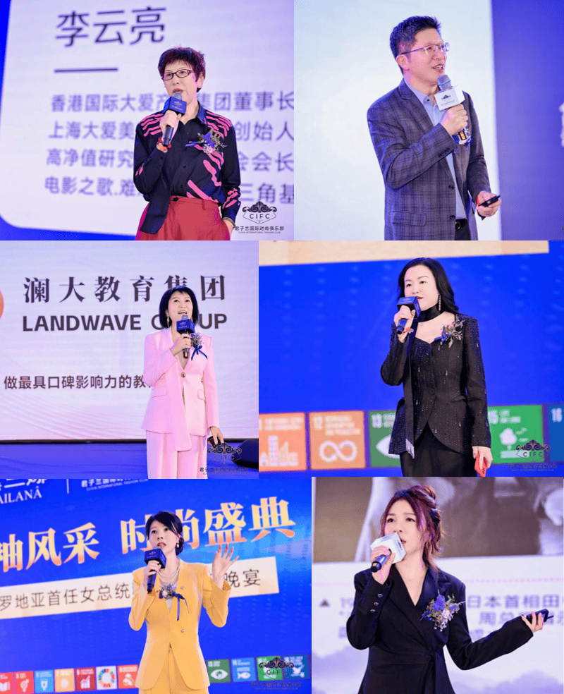 国际时尚论坛将活动推向思想交流的高潮。科琳达总统居中而坐,与张美峰、李云亮、薛帆希、澜大教育代表、张继薇、杜康酒代表等嘉宾围绕女性领导力、国际文化交流与产业合作展开深度对话。活动冠名方及赞助企业代表也相继登台发言,分享了参与本次盛典的感想与对未来的展望,进一步彰显了各界携手共进、共谋发展的合作精神。