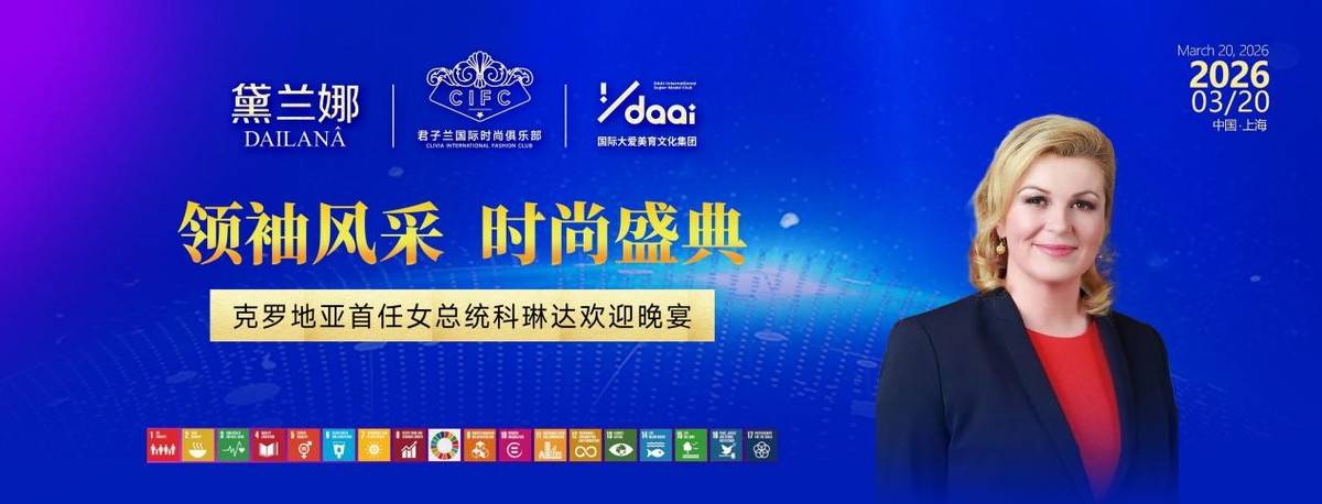 2026年3月20日,由国产高端知名品牌黛兰娜冠名、君子兰国际时尚俱乐部主办的“领袖风采 时尚盛典——克罗地亚首任女总统科琳达.格拉巴尔—基塔罗维奇欢迎晚宴”在沪隆重举行。黛兰娜董事长礼赠科琳达总统黛兰娜联合国邮票,科琳达总统也用实际行动表达了对中国护肤品牌黛兰娜的鼎立支持和高度信任,致辞后还给黛兰娜颁发了《国际优质护肤品牌》证书。
