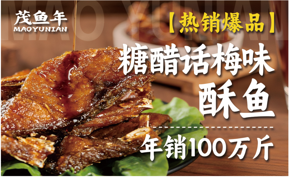 正是基于这一洞察,茂鱼年将江南地区传统的“酥鱼”进行改良升级,推出了核心单品——糖醋话梅味酥鱼(爆鱼)。这道产品选用新鲜草鱼,先经精准控温油炸,使鱼块外酥里嫩、骨酥可嚼,再浸入秘制糖醋话梅卤汁。话梅的微酸与果香有效中和了糖醋的甜腻,入口层次丰富,回味干净利落。