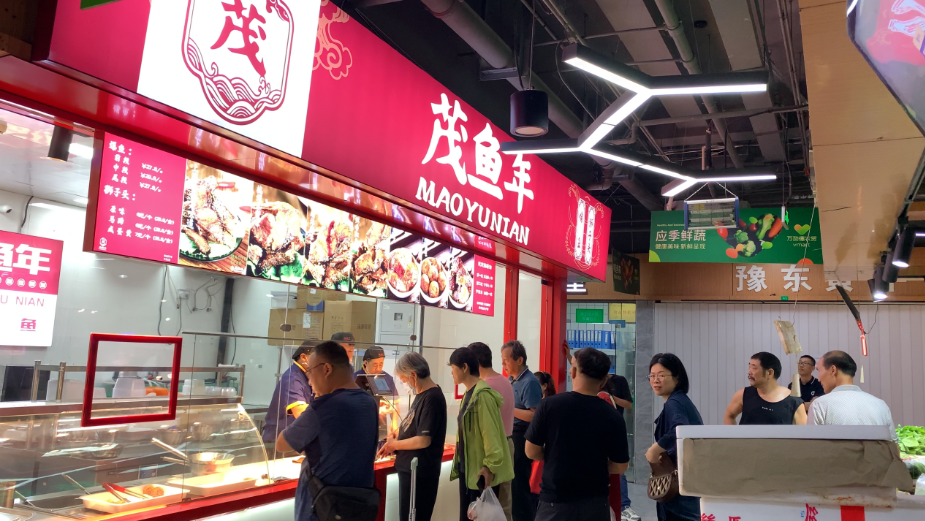 茂鱼年将开店渠道精准锁定在菜市场及周边社区,单店面积仅需15平方米左右。菜场天然具备高频人流、刚需消费的特征,且租金成本相对可控,为门店提供了稳定的客流基础与较低的试错成本。