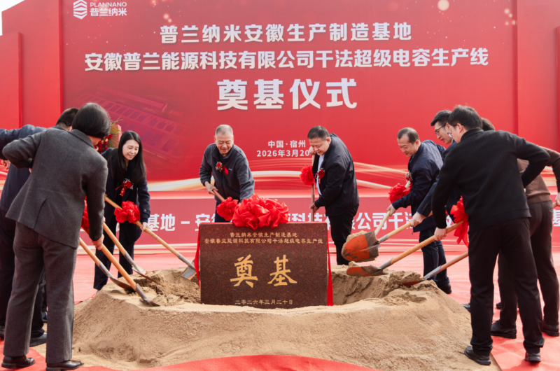 中国·泗县,2026年3月20日 —— 今日,天津普兰纳米科技有限公司(以下简称“普兰纳米”)全资子公司——安徽普兰能源科技有限公司投建的“普兰纳米安徽生产制造基地 - 安徽普兰能源科技有限公司干法超级电容生产线”奠基仪式在安徽省宿州市泗县隆重举行。