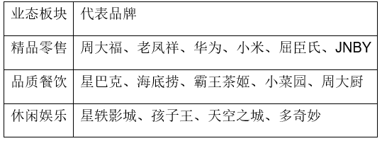 项目集珠宝首饰. 3C数码. 男装女装. 服装集合 .运动户外 .潮牌服装. 潮玩集合. 儿童零售 .化妆护肤. 生活零售. 精致正餐 .娱乐运动 .儿童教培 .生活健康等于一体,实现全业态、全客群覆盖。