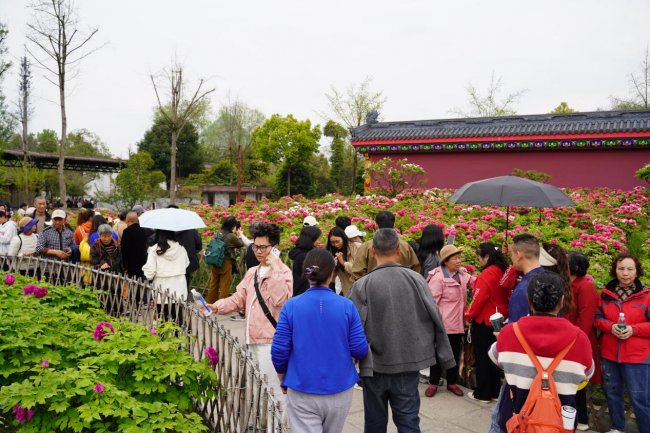 春深四月,峨眉山下百花争艳,一场跨越四百年的花事之约如约而至。位于峨眉山市城区的大佛禅院内,万余株牡丹竞相绽放,红墙古寺配国色天香,将这座亚洲最大的汉传佛教十方丛林寺院之一,装点成如梦似幻的“花海仙宫”,吸引八方游客纷至沓来。