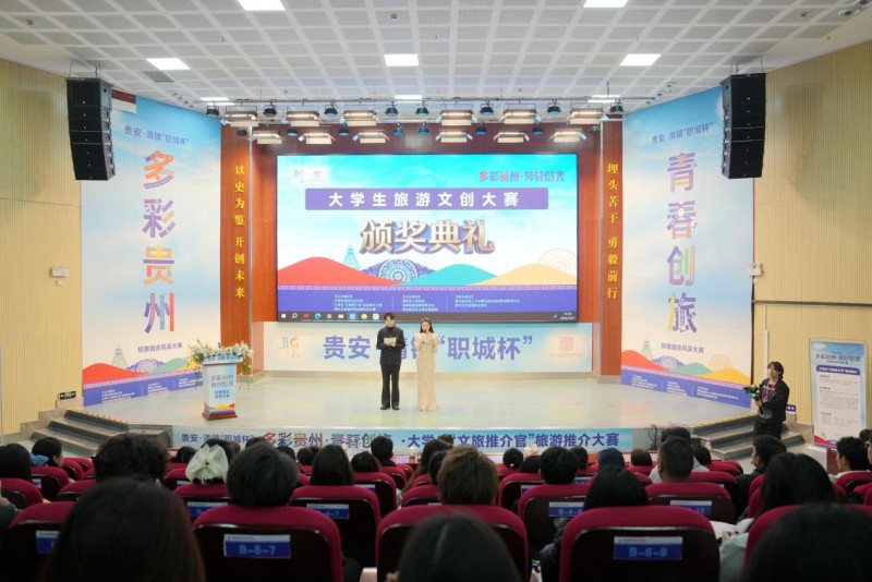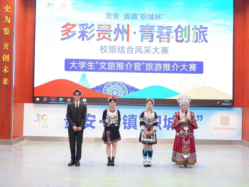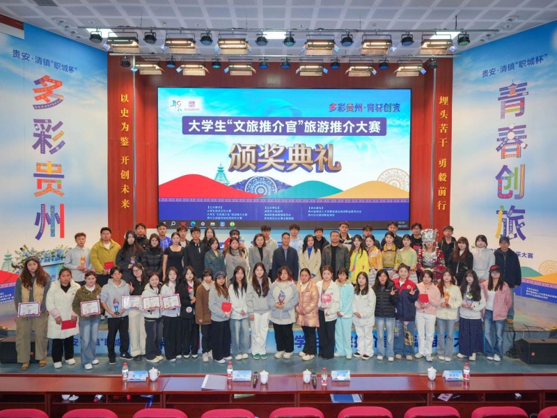 3月21日,贵安·清镇“职城杯”多彩贵州·青春创旅校旅结合风采大赛颁奖典礼在贵州省职业教育公共实训中心圆满落幕。本次大赛由清镇市人民政府、清镇职教城管理委员会、贵安新区社会事业管理局主办,贵州省旅游人才发展促进会旅游职业教育分会、贵州文化旅游职业学院承办,历时三个月,吸引清镇职教城各高职院校76支队伍、近千名学子参与。通过“两线上、一线下”的创新赛制,一批兼具文化深度与市场潜力的创意作品脱颖而出,为贵州文旅产业高质量发展注入了鲜活的青春动能。