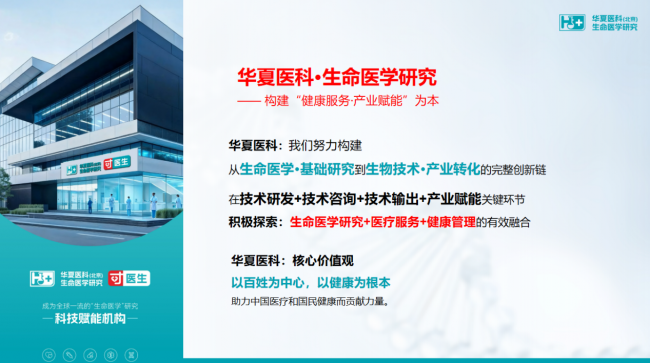 “健康中国”战略的最终落点,是惠及广大群众的身心健康。华夏医科(北京)生命医学研究以“科技赋能、科技向善、科技共享、科技协同”为价值导向,推动技术创新与民生需求同频共振,让生命医学科研成果更贴合大众健康需求、更好服务全民健康事业。