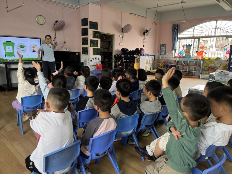 在互动环节,工作人员提出问题后,孩子们纷纷踊跃举手,积极抢答。他们用稚嫩的声音说出自己对垃圾分类的理解,现场气氛热烈非凡。工作人员还为回答正确的孩子送上了小奖品,进一步激发了孩子们参与的热情。