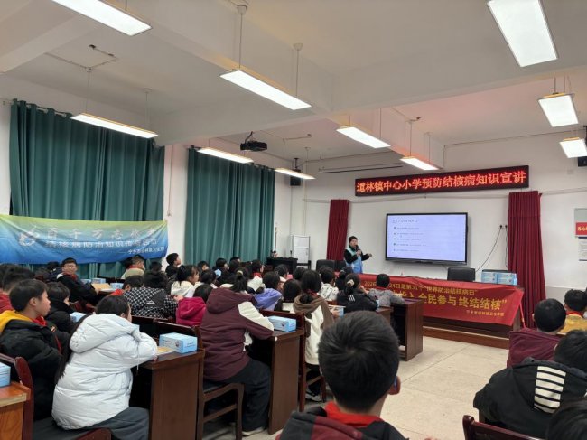 为迎接第31个"世界防治结核病日",3月24日下午,宁乡市道林镇卫生院结核病防治宣讲队走进道林镇中心小学,开展了以"全面行动,全力投入,全民参与,终结结核"为主题的健康教育讲座,200余名师生参加了此次活动。