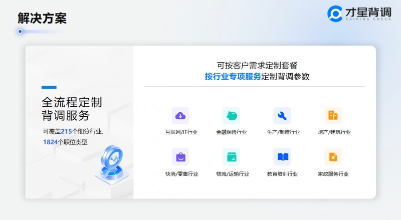 传统背调常常“用一套方案模板打天下”,难以适应企业用工场景的多元化需求。才星背调的一大优势就在于可按客户需求定制套餐,按行业专项服务定制背调参数。依托分层级定制能力,精准匹配不同岗位、不同用工形式的核查要求。