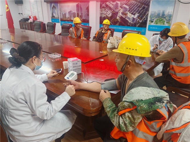 活动开始前,党支部提前策划,精心准备,提前与杭州市第一人民医院协作医院取得联系,详细说明活动需求,就医生专业安排、义诊时间等细节进行反复沟通,最终确定由内科、外科和专科三名专家参与。活动中,几位专家为工人免费测量血压血糖等身体指标,针对身体情况异常的工人提出建议并将情况上报至项目部。工友们积极参与,并对此次义诊活动提出赞扬。
