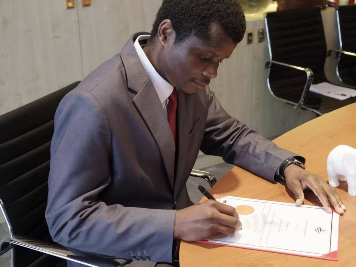 (Jani Grey Kasunda阁下为黄伟健先生、尹正先生签署证书 黄愿琪 摄)