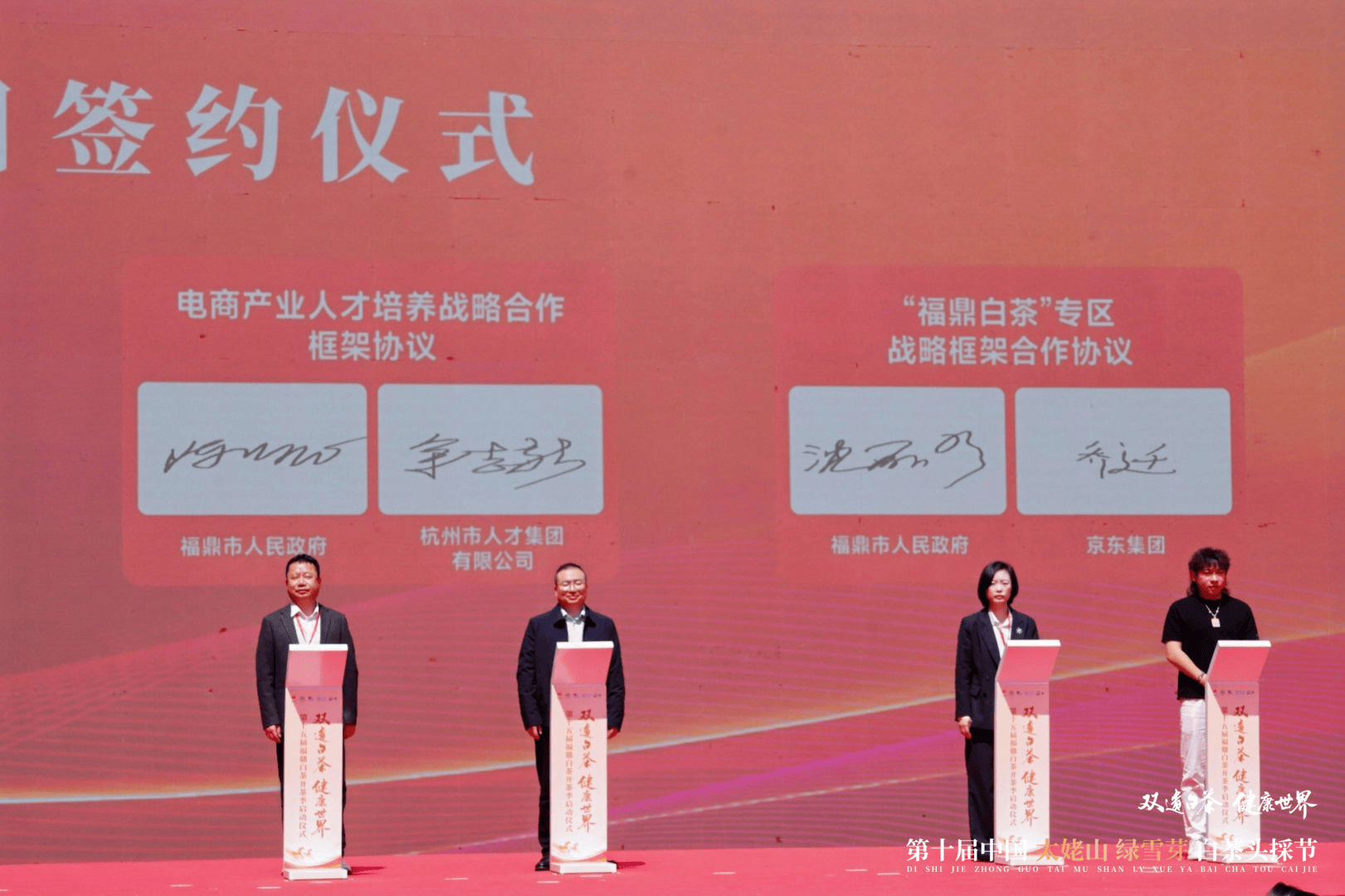头採不仅是对传统的致敬,更是对未来的开拓。本届头採节期间,绿雪芽与京东茶馆签署战略合作协议,共同成立“京东福鼎白茶品质联盟”,推动白茶产业的标准化、线上化发展。京东将通过产业带招商政策、流量扶持等措施,助力绿雪芽线上化发展,提升其市场份额与交易规模。联盟同步推出符合“严选好茶”标准的品质规范,进一步完善产品溯源与质量监测体系。