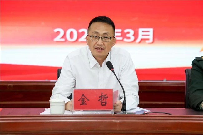六沙村党委书记、退役军人黄伟斌作为村(社区)代表作国防动员和拥军优属工作介绍。