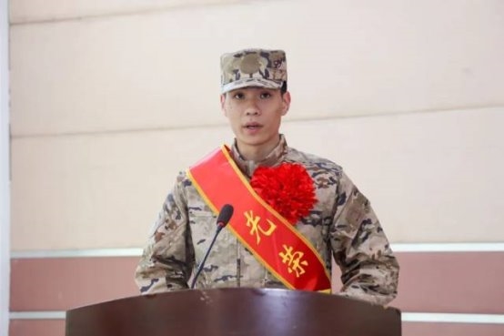退役士兵代表吴嘉杰分享了军旅生涯的收获,勉励新战友们在部队淬炼成长。