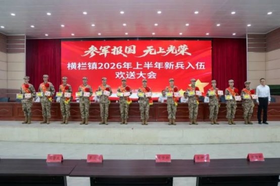 3月14日下午,中山市横栏镇举行2026年上半年新兵入伍欢送仪式,欢送12名优秀青年奔赴军营,迎接7名退役士兵载誉返乡。镇党委副书记、镇长金哲出席仪式并讲话,镇党委副书记、武装部部长黄亮主持仪式。