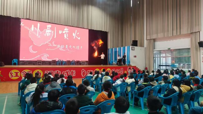川剧喷火这一非遗绝技,更是将整场演出的氛围推向顶峰。表演者凝神聚气、运丹田之力,喷吐而出的烈焰如火龙腾空、似星火绽放,绚烂夺目、气势磅礴,既生动展现了中华非遗文化的博大精深,也彰显了同学们勇于挑战、精益求精的专业态度与勇气,现场掌声雷动、欢呼不绝,成为整场演出最惊艳的亮点。