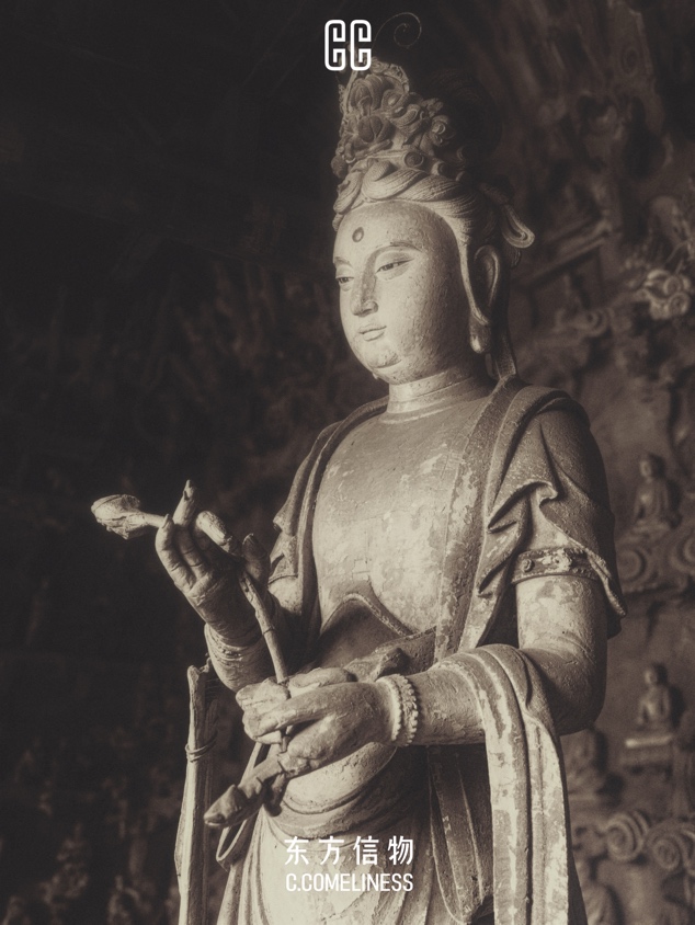 双林寺那朵莲花还有一个特别之处:它被托举的方式。菩萨的手掌向上,手指微曲,莲花安稳地卧在其中。这个姿态,不是占有,而是守护。