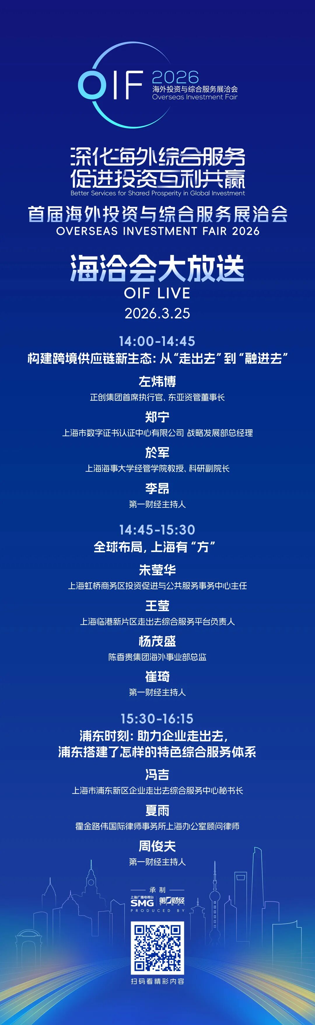 值得一提的是,第一财经将在首届海洽会期间举办“问海而行,知势致远”第一财经出海服务生态平台发布会,汇聚出海企业、金融机构、律所、咨询公司及政府部门,共话全球化新路径。会上将正式推出“Go Global Corporate Service Eco Hub”企业出海一站式解决方案,依托第一财经专业财经媒体优势与深度研究能力,为中国企业全球化布局提供品牌传播、战略咨询、市场洞察、资源对接及风险预警等全链条服务。