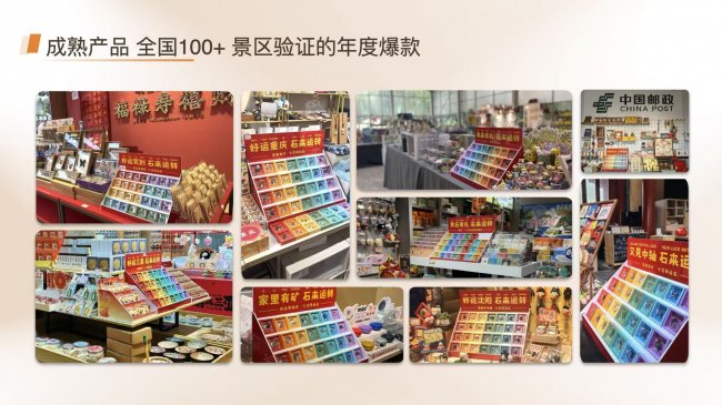 其核心优势在于极简的落地模型:专用展架占地仅1/8平方米,陈列密度高,单点坪效可达传统旅游商品的3至5倍。同时,展架与展陈方案由企业统一设计输出,形成了一套成熟完整、可快速复制的终端销售体系。
