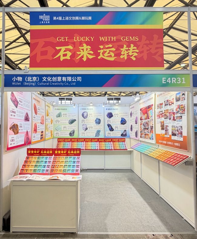 近日,上海文创展圆满落幕。来自北京的小物(北京)文化创意有限公司携其核心产品“石来运转”天然宝石潮玩盲盒亮相展会,凭借独特的品类定位与成熟的景区商业模式,成为展会上备受关注的文创品牌之一。