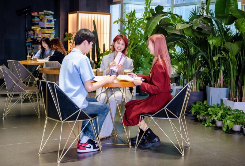 帝京日语旗舰校1200余平,立体时尚,高端大气、设计感强。真石、实木装饰,点缀日本传统工艺“组子细工”,极具观赏性。配备各种现代化教室,也配有大长桌、沙发卡座的多功能大自习室,深度自习室,E人自习室,I人自习室,花园自习室等多种自习室。配有超大LED屏幕的阶梯教室,大型榻榻米和室,美术画室,鱼池,游戏活动区等。也因此帝京日语被学子誉为日语培训机构的黑珍珠。是日语学习,日本留学首选。