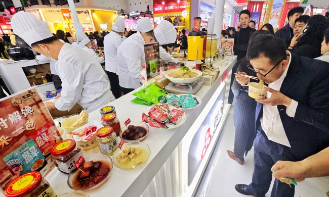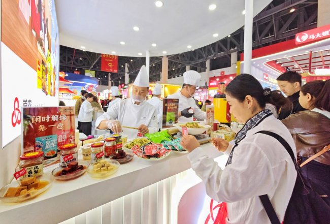 本届糖酒会,首农食品集团携旗下王致和等二十余个品牌集体亮相,在美食体验区打造了别样的味觉体验——工作人员用王致和乳酸菌发酵酸菜炖的排骨,吸引众多观众驻足品尝。