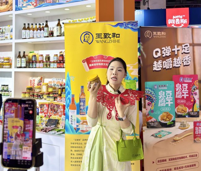 据展区工作人员介绍,本次参展除经典腐乳外,料酒、豆沙豆馅、乳酸菌酸菜、火锅调料、臭豆腐干等数十种产品同步亮相,多款契合年轻消费者口味偏好的新品一经推出便成为市场新宠。始创于清康熙八年(公元1669年)的王致和,距今已有 350 余年历史,旗下腐乳、调味品等产品享誉中外。