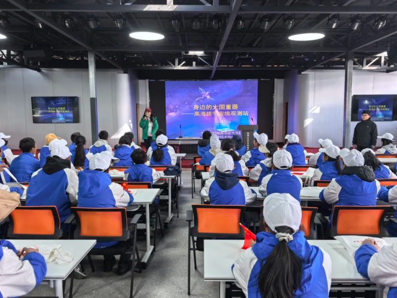 在稻城云台天文产业园里,师生先后参观天文望远镜集群与科普展厅,通过星空影像、天文成果展陈直观了解天文观测相关知识。专业科普人员还为同学们开设专题天文课堂,课堂设置互动提问环节,同学们踊跃参与、积极作答,在问答交流中深化知识理解,活动还为参与课堂的同学们发放了小礼品。
