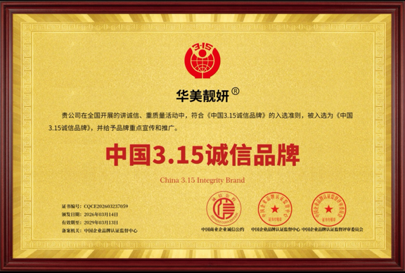 连续多年斩获中国3·15诚信品牌,是权威机构与市场对华美靓妍的双重认可。未来,华美靓妍将继续坚守诚信初心、深耕中医养肤,以更高标准把控品质、以更优服务守护消费权益,为亚洲女性带来安全、有效、高性价比的护肤体验,以诚信之力赋能行业健康发展。