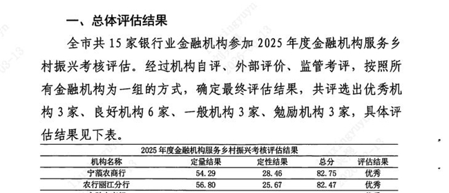 农业银行丽江分行在收到中国人民银行丽江市分行《关于开展丽江市2025年金融机构服务乡村振兴考核评估工作的通知 》后,高度重视,组织专班人员按照考核评估要求开展了自评、评估、备案三个环节,按照事先要求将参加年度考核的指标数据、参评资料、自评结果等分别报送至中国人民银行丽江市分行和国家金融监督管理总局丽江监管分局。