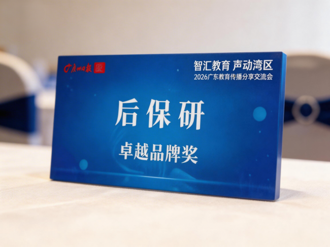 评委会在授奖词中指出:“后保研以专业的服务体系、扎实的辅导成果和不断进化的创新能力,成为广东乃至全国学子升学路上的可靠伙伴。其在华南区域市场的深度耕耘与影响力,正是品牌价值最直观的体现。”