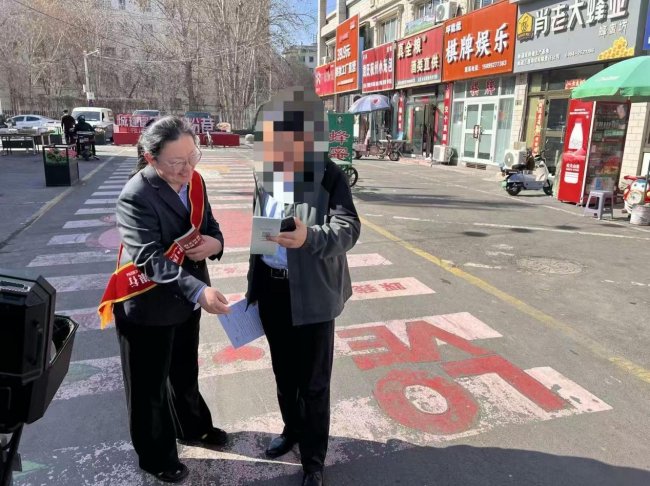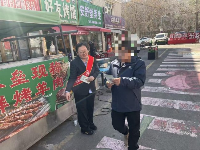 美食一条街人来人往,烟火气十足。农行昌吉市支行的工作人员在这里通过悬挂横幅、摆放风险提示展板、发放宣传折页等形式,将金融安全知识送到了市民和商户的“家门口”。