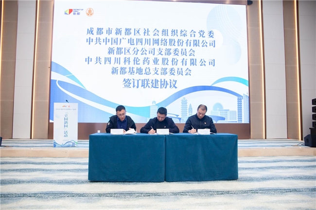 座谈交流结束后,重庆市九龙坡区慈善会与成都市新都区慈善会签订合作协议,新都区社会组织综合党委与中国广电新都区分公司党支部、科伦药业党总支签订联建协议,标志着两地协作、政企联动助力产业园区发展进入新阶段,将进一步推动慈善资源共享、党组织共建,形成工作合力。