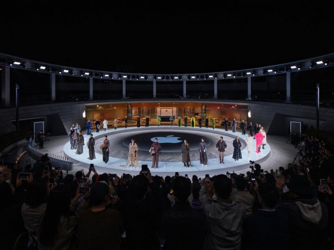 此次合作并非偶然。2020年,王逢陈便作为时装设计师代表,受邀参与Apple Behind the Mac英国创意人系列。六年的今天,双方再度携手,在Apple静安特别呈现了一场精彩绝伦的大秀。