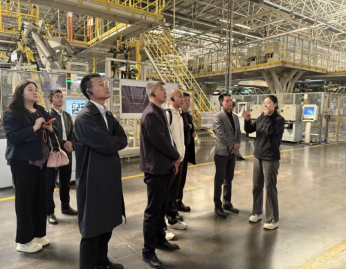 作为全球首个实现全工序自动化的“黑灯工厂”,吉利西安基地以每分钟下线一辆整车的效率、兼容多元动力形态的柔性产线,展现了西安智能制造的高水平。调研团深入冲压、焊接等核心车间,观摩机器人协同作业、AI智能调度系统及光伏绿电应用场景,切身感受数据驱动下制造业的智能化、绿色化变革。