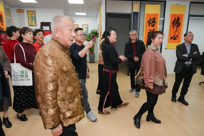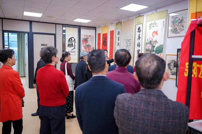 德高望重的老艺术家们更是现场导赏,为大家讲解作品背后的意境与技法。从书法的笔走龙蛇,到鱼跃图的灵动鲜活,再到牡丹图的雍容华贵,老艺术家们娓娓道来,让在场众人深刻感受到传统书画的深厚底蕴与艺术魅力。不少年轻爱好者认真聆听,在笔墨传承中汲取养分,让文化根脉在交流中得以延续。