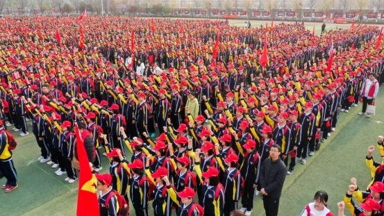 在衡水二中高一2级部主任王保辉的带领下,全体同学高举右拳,庄严宣誓:“春风浩荡,意气飞扬;超越不止,步履铿锵。脚踏实地,不畏路长;坚定信念,勇毅前行。同心向前,乘风破浪;并肩奋进,共创辉煌!共创辉煌!共创辉煌!”誓言响彻云霄,彰显了三校学子不畏艰难、团结拼搏的坚定信念。