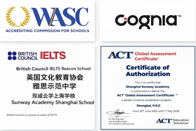 学校凭借过硬的办学品质、完善的课程体系与先进的教育理念,顺利通过WASC、Cognia国际双认证,成为同时拥有两大权威背书的优质学府。这标志着学校在教育教学、管理运营等多个维度均达到国际先进水平,办学实力获得高度认可,学分与成绩单也更具国际公信力。