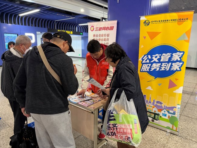 3月30日,苏州地铁7号线积翠桥站工作人员联合苏州市公交集团姑苏公司,在积翠桥地铁站开展“两网融合”便民服务活动。
