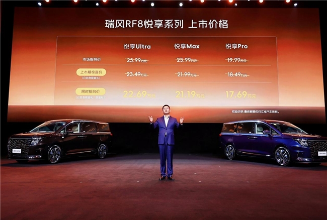 此次瑞风RF8悦享系列推出Pro、Max、Ultra三个版本,限时抢购价17.69万元起。瑞风还为首批用户准备了至高价值70888元的7重尊享购车大礼,为老车主送上免费升级车钥匙、1666元升级原厂NVH静音包的专属权益,用满满诚意回馈新老用户。