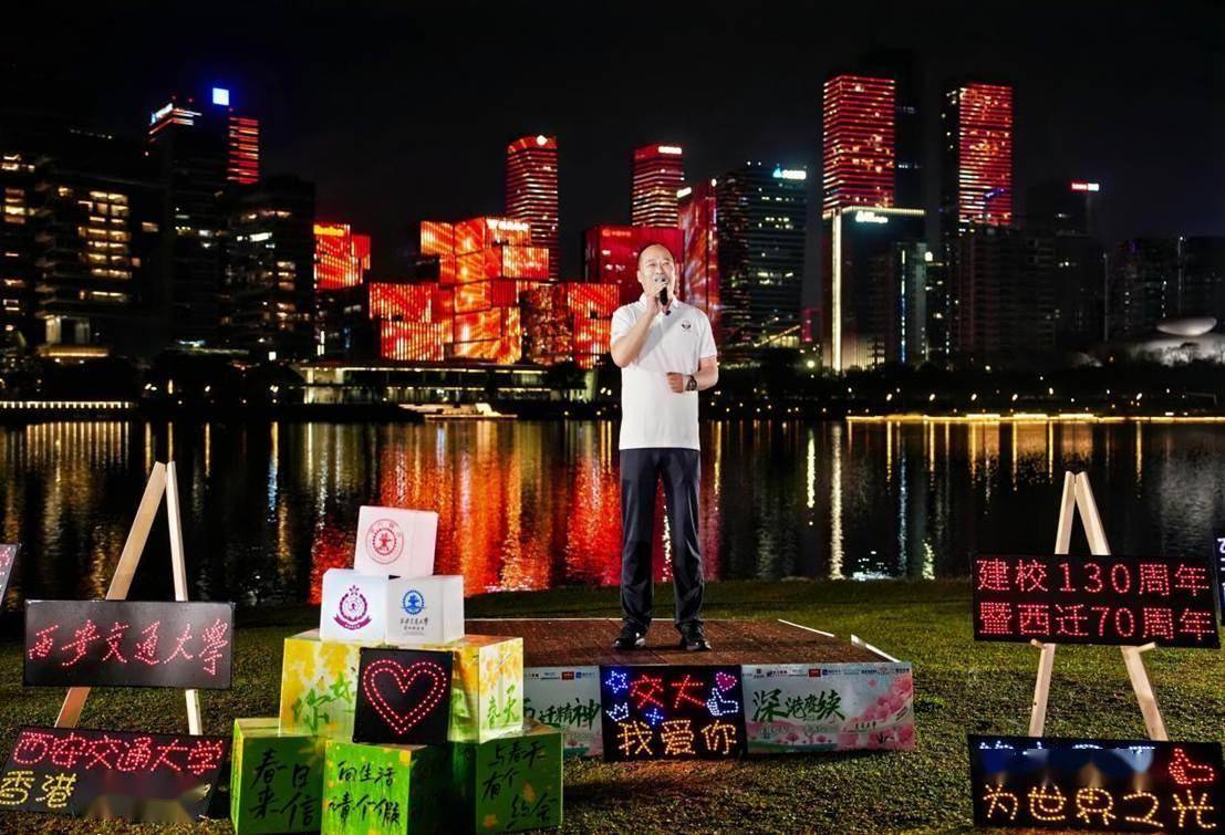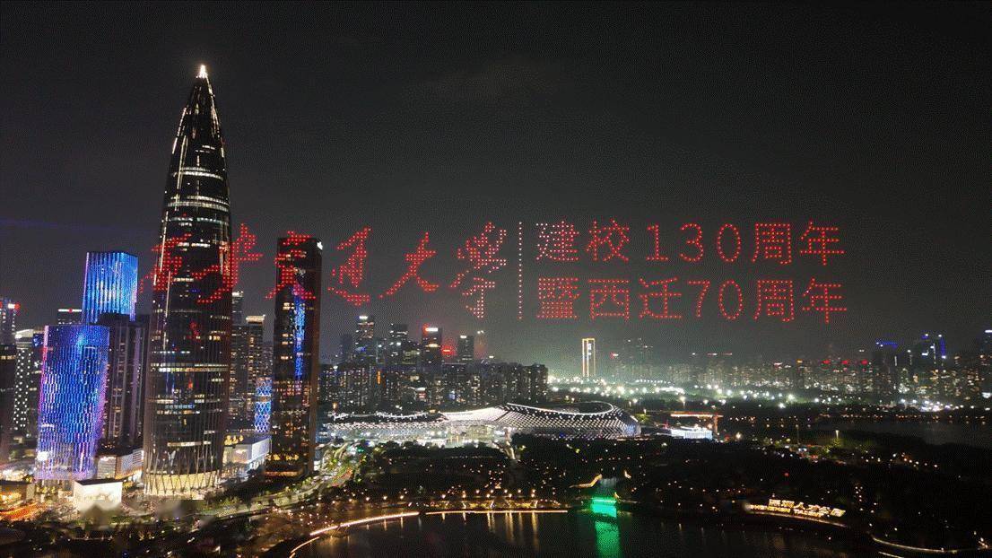 当晚,当深圳湾的暮色逐渐沉落,中国华润大厦与鹏瑞大厦两座摩天大楼,如同被点燃的巨型画布,为西安交通大学建校130周年暨西迁70周年的庆祝活动拉开序幕。