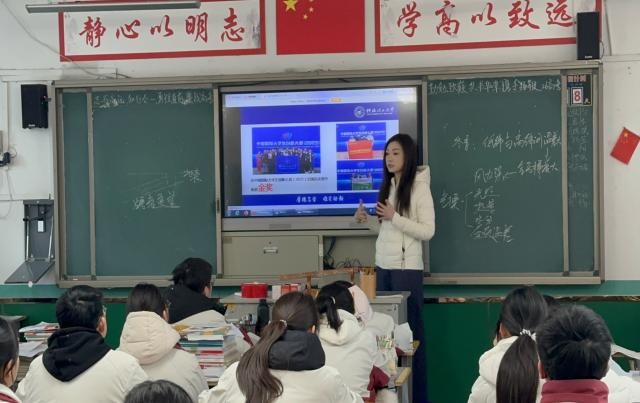 作为团队核心成员,谢天慧兼具扎实的专业能力与丰富的综合实践经验。此次回到母校安徽阜阳第四中学——这所创办于1956年、办学底蕴深厚、教学质量稳步提升、深受社会认可的市级示范高中,谢天慧提前与母校老师深度对接,结合该校应届生源为主、备考氛围浓厚的特点,量身优化分享内容,切实为学弟学妹提供有价值的参考与启发。