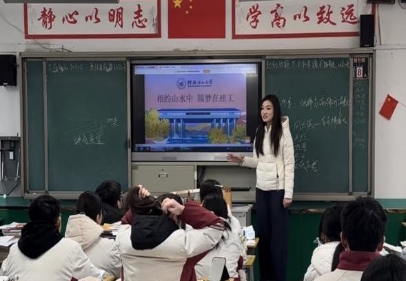 为搭建高校与优质高中的协同育人平台,精准传递高校办学优势与招生政策,2026年寒假期间,桂林理工大学外国语学院“桂韵邀约”回访母校招生宣讲团赴多所高中开展活动。团队成员谢天慧返回母校安徽阜阳第四中学,为高三学子带来了一场内容丰富的专场分享。