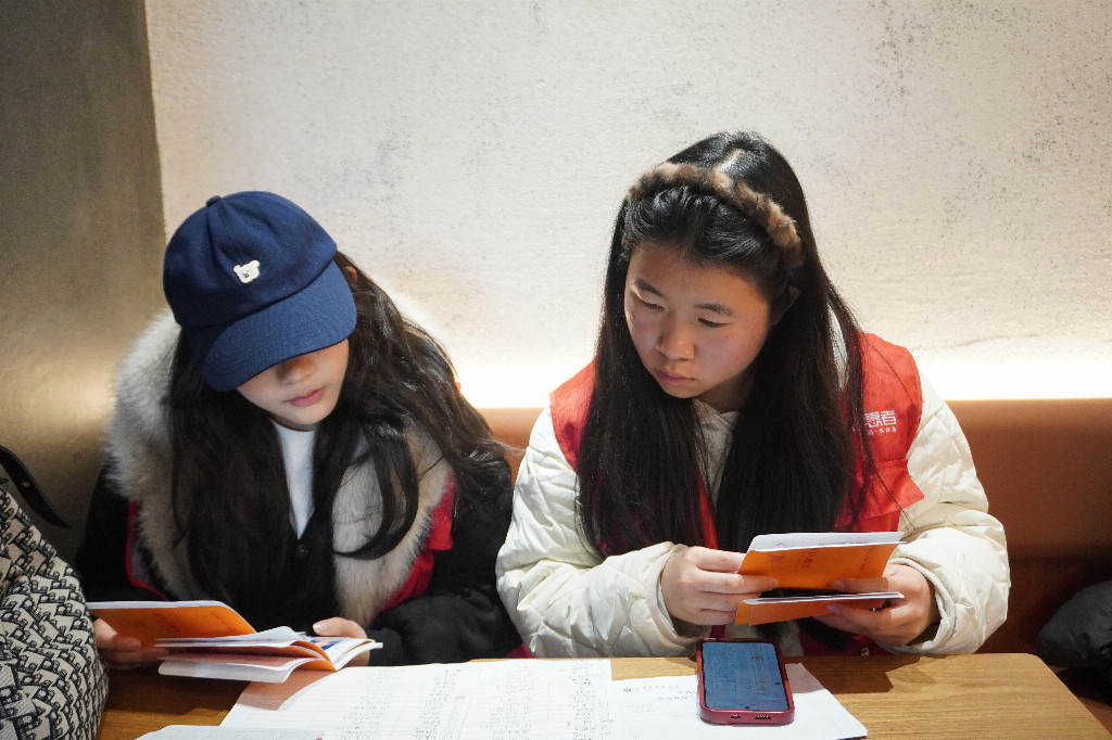 图为 志愿者在清点到场人员名单、完成公益小天使活动盖章