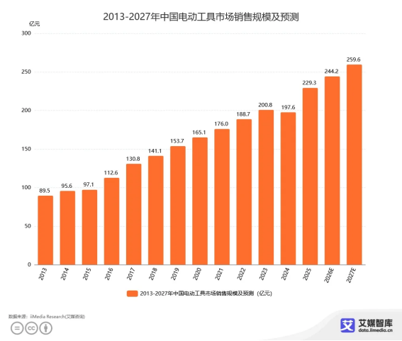 随着制造业升级与家装DIY 需求增长,电动工具正从专业领域向大众消费市场渗透,中国市场步入稳健增长快车道。iiMedia Research(艾媒咨询)发布的《中国电动工具行业发展状况与用户行为洞察数据》显示,2025年中国电动工具市场销售规模为229.3亿元,预计到2027年有望突破259.6亿元。基建扩容、工业自动化、智能制造的全面推进,更让园林工具细分赛道迎来爆发窗口期,一批深耕技术、坚守品质的品牌顺势崛起。