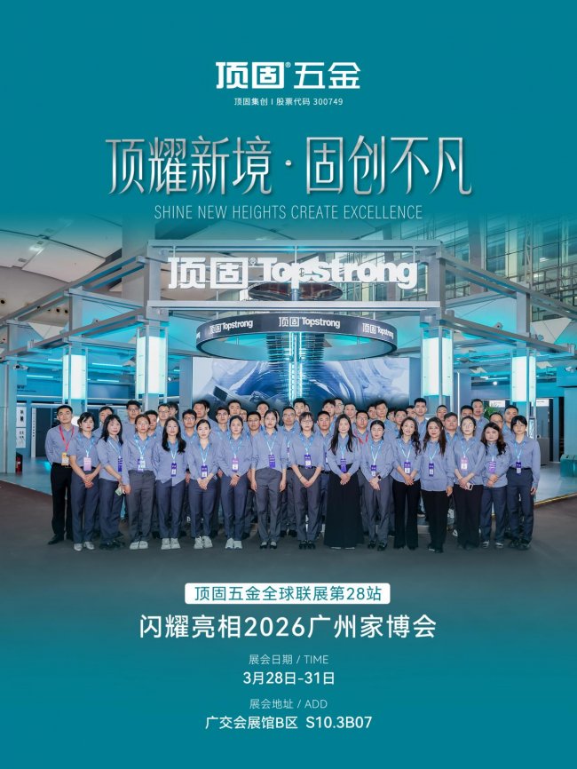 2026广州家博会作为顶固五金全球联展的第28站,不仅是顶固五金品牌全球化布局的关键一步,更是品牌实力的又一次重要体现。顶固以民族品牌之姿,向世界证明:中国五金不仅能打造精品,更能定义标准、引领潮流。