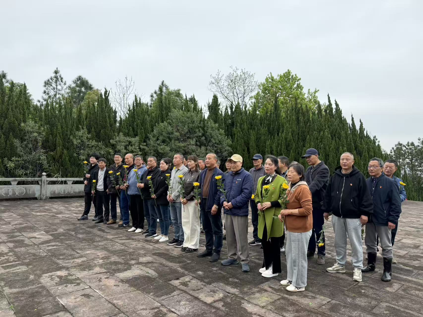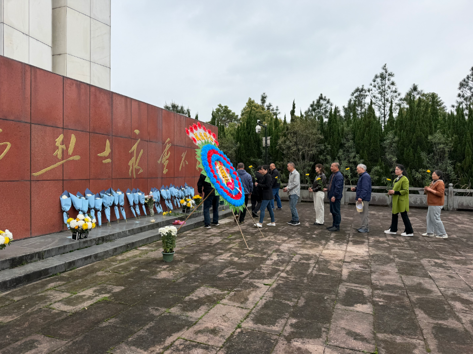 上午,烈士陵园内庄严肃穆,松柏苍翠。全体党员整齐列队,肃立在革命烈士纪念碑前。在深沉的哀思中,党员代表向烈士纪念碑敬献花篮,随后全体党员依次上前,将手中的菊花轻轻摆放在纪念碑基座前,以此表达对革命先烈的崇高敬意与无限追思。