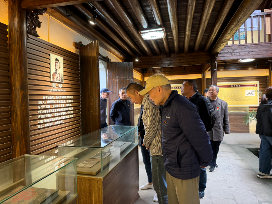 祭扫仪式结束后,党员们前往雷烨烈士故居参观学习。雷烨烈士是著名的战地记者,他在抗日战争中深入前线,用镜头和文字记录下日寇的暴行与军民抗战的英勇事迹,最终壮烈牺牲。在故居内,党员们认真聆听讲解员讲述雷烨烈士的生平事迹,仔细观看陈列的珍贵历史照片和实物。一张张泛黄的照片、一件件历经沧桑的遗物,生动再现了那段烽火连天的岁月,让在场党员深受震撼和教育。