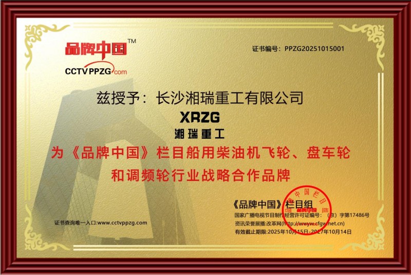 对创新的执着追求以及对技术的坚定投入,为湘瑞重工赢得了广阔的市场和发展前景。凭借强大自主研发能力,湘瑞重工一路开拓、持续创新,始终坚持在高技术壁垒和市场快速变化中进行自我超越,坚定与客户和行业共同成长,业务覆盖面和行业影响力持续扩大。2024年,湘瑞重工在船用柴油机飞轮、盘车轮和调频轮细分领域国内市场占有率达22.84%,2025年进一步提升至34.43%,更是凭借其在相关细分领域的深度应用和广泛创新实践,荣膺“《品牌中国》栏目战略合作品牌”授牌。