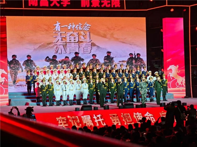 校国旗护卫队带来的表演《钢铁誓言》气势磅礴,队员们身姿挺拔、步伐铿锵,整齐划一的队列、庄严威武的姿态,展现了南大学子严明的纪律与坚定的信仰,铿锵有力的誓言,彰显着青年学子护佑家国、矢志奋斗的责任担当,让全场观众心生敬佩,现场掌声经久不息。