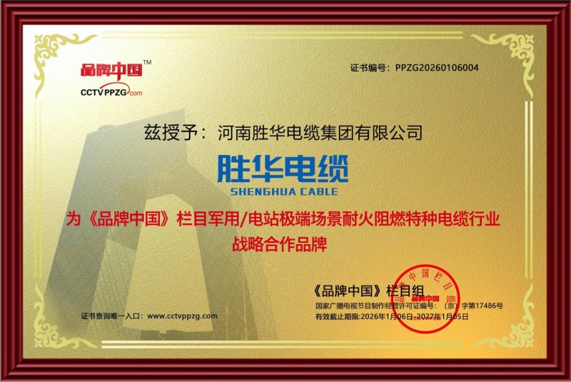 胜华电缆产品涵盖高低压交联电缆,核心产品覆盖特种电缆、汽车电子及预分支电缆等上万种规格产品。其中特种电缆表现突出:新型柔性防火电缆达到英国BS标准最高等级;光伏电缆获德国莱茵TUV认证;阻燃B1级电缆符合国家最高标准,技术国内领先。公司“悟空”商标被认定为河南省著名商标。根据行业权威数据测算,胜华电缆在军用/电站极端场景耐火阻燃特种电缆细分领域,2024年、2025年分别以14.01%、15.01%的全国市场占有率领跑该细分赛道。并在2025年荣获“《品牌中国》栏目战略合作品牌”授牌,这一荣誉展现出强大的产品竞争力和品牌影响力。